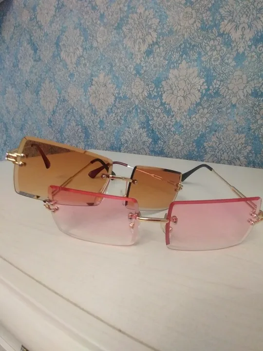 Fashion Small Rectangle Sunglasses Women Rimless Square Sun Glasses 2022 Summer Style Female Uv400 Green Brown