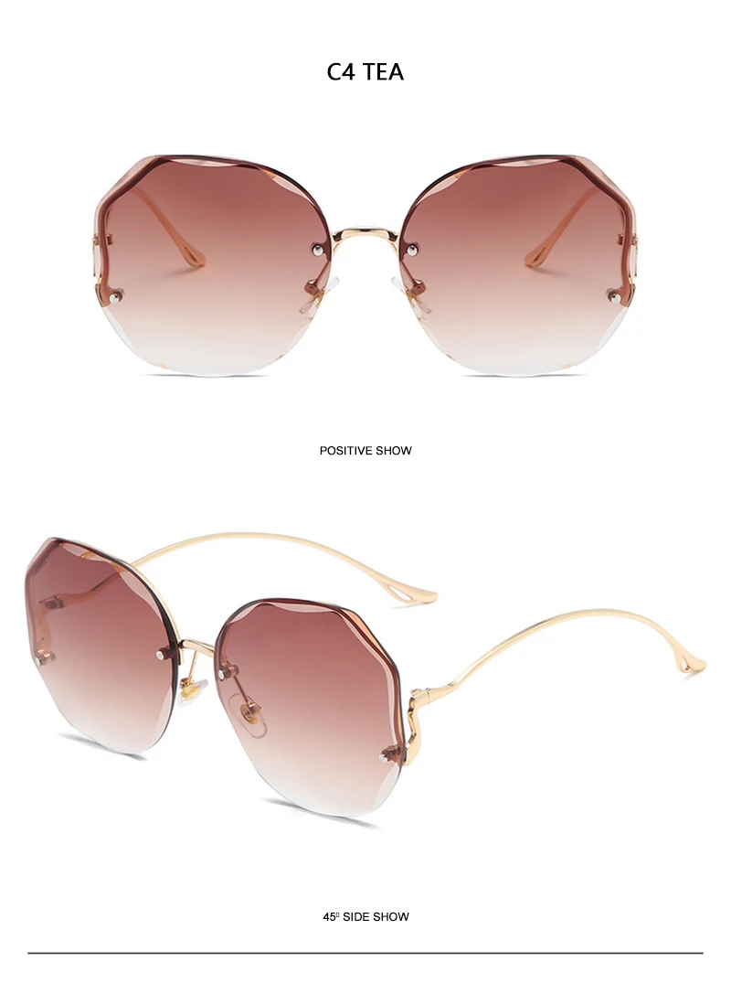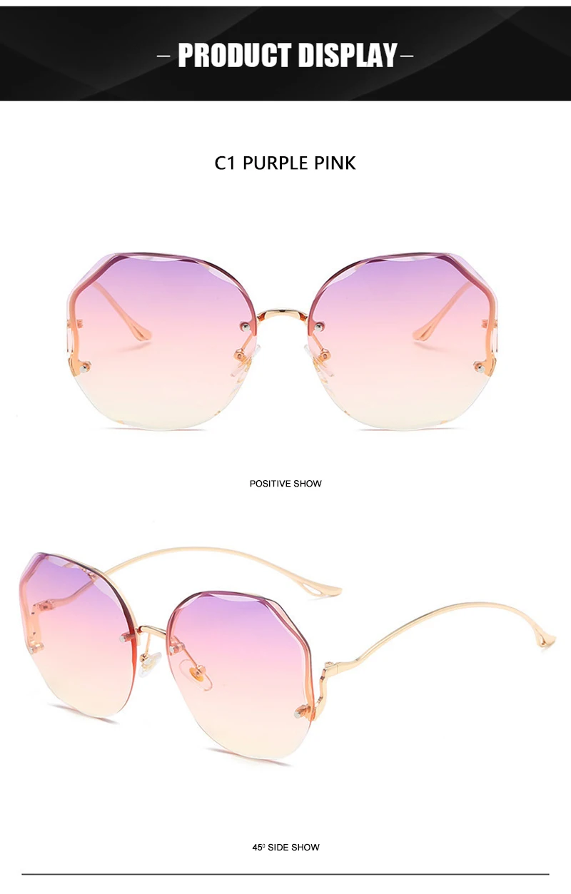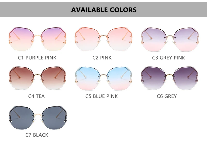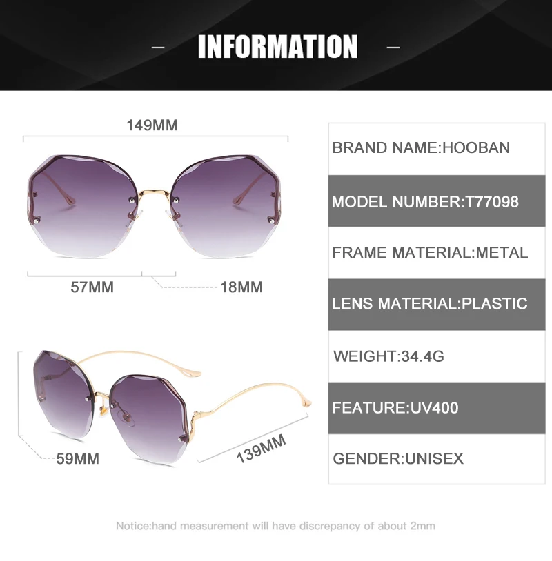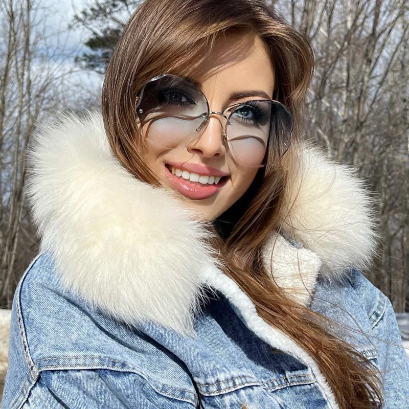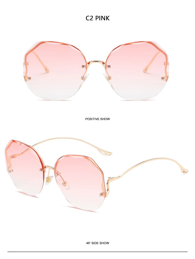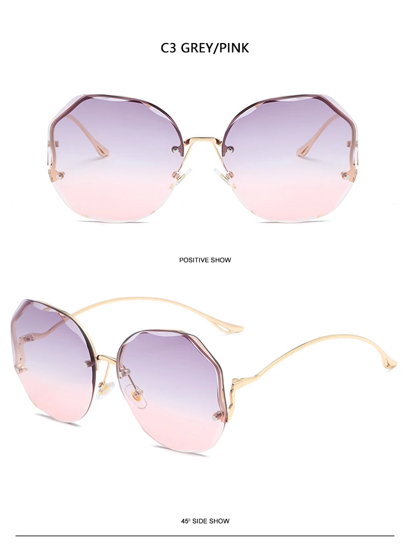 HOOBAN 2021 Fashion Oversized Rimless Sunglasses Women Brand Design Gradient Sun Glasses For Lady Vintage Travelling Eyeglasses