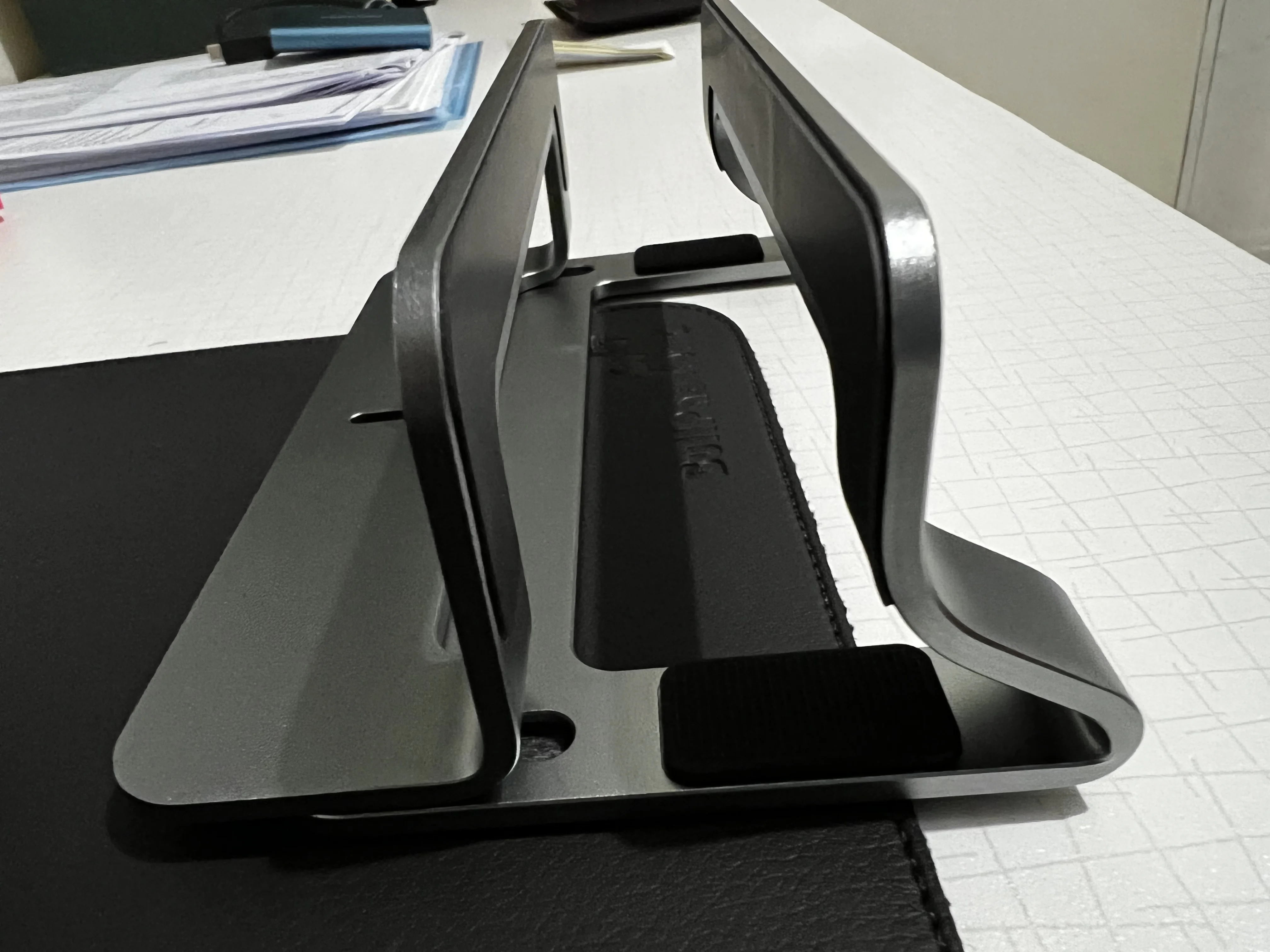 Держатель понравился, стоит устойчиво, только цвет немного темнее чем я ожидал (отличается от цвета MacAir)! Коробка немного помята, что испортило впечатление (упаковка просто в пакет, хотя товар не пострадал, но я заказываю держатель второй раз, ведь первый раз товар отправили обратно по причине повреждения упаковки)!