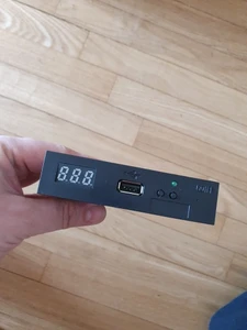 Очень быстрая доставка. Это PCB SFRKC30.AT2, который использует более старый чип AT32F415, а не более новый AT32F435, но после обновления с FlashFloppy он работает фантастически с моим Ensoniq мираж. Все, что вам нужно, это двусторонний USB-A кабель для подключения с вашим ПК к usb-слот на ГОТЭК. С запасом-стандартный стабильный выпуск FlashFloppy я мог загружать файлы HFE без дополнительной работы (Mirage просто нужен набор перемычек S0, больше ничего). Но вышла новая тестовая сборка, которая изначально поддерживает файлы Mirage IMG (EDM), и это, похоже, работает хорошо. Потребовалось две минуты, чтобы добавить активный пьезо с двух заголовков, поэтому он делает почти идентичные звуки на старом физическом диске. Добавление поворотного энкодера и/или OLED также кусок пирога, если вы так желаете, с полными инструкциями на FlashFloppy github. С тех пор сделали крепление для привода, чтобы он аккуратно вписывался в переднюю панель Mirage's, слегка угловой, чтобы ясно видеть светодиод. (физический дисковод гибких дисков выше)