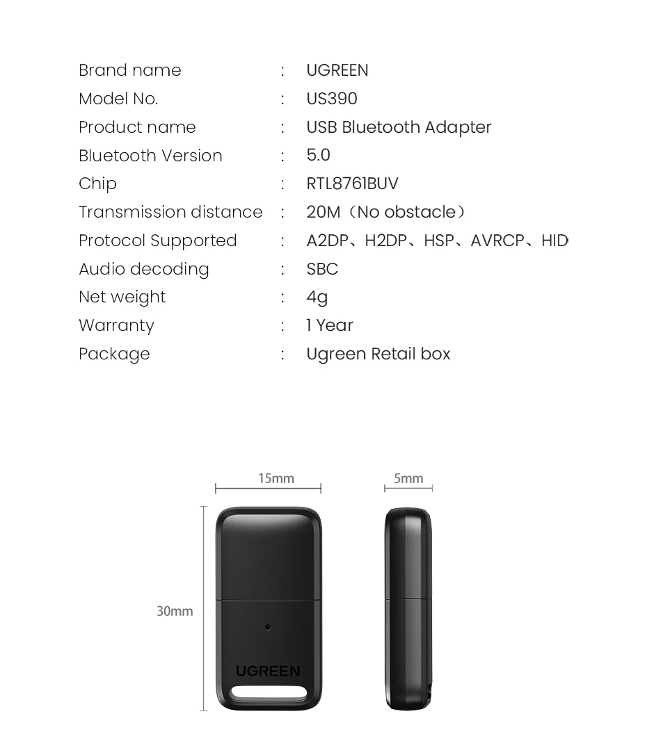 Был нужен блютуз для компа, подключить клавиатуру. Выбрал v4.0 т.к. комп под OS Lubuntu и почитав в интернете что чипы CSR по лучше совместимы с Linux чем v5.0 на Realtek. Можно было бы проверить, но не хотелось тратить свои 5$. Пришло быстро. Упаковка как в магазине. Пока ждал начитался что много фэйков под видом CSR продаётся. Разобрал и на чипе удалось рассмотреть CSR. Подключил, заработало сразу. Клавиатура подключилась. Возможно дело в операционной системе, но не показывает заряд аккумулятора клавиатуры. Старый адаптер Gembird, размером с флэшку, v2.0, показывал уровень заряда. Проверил на Windows 10: так же работает без драйверов перезагрузок. Доволен на 100%!