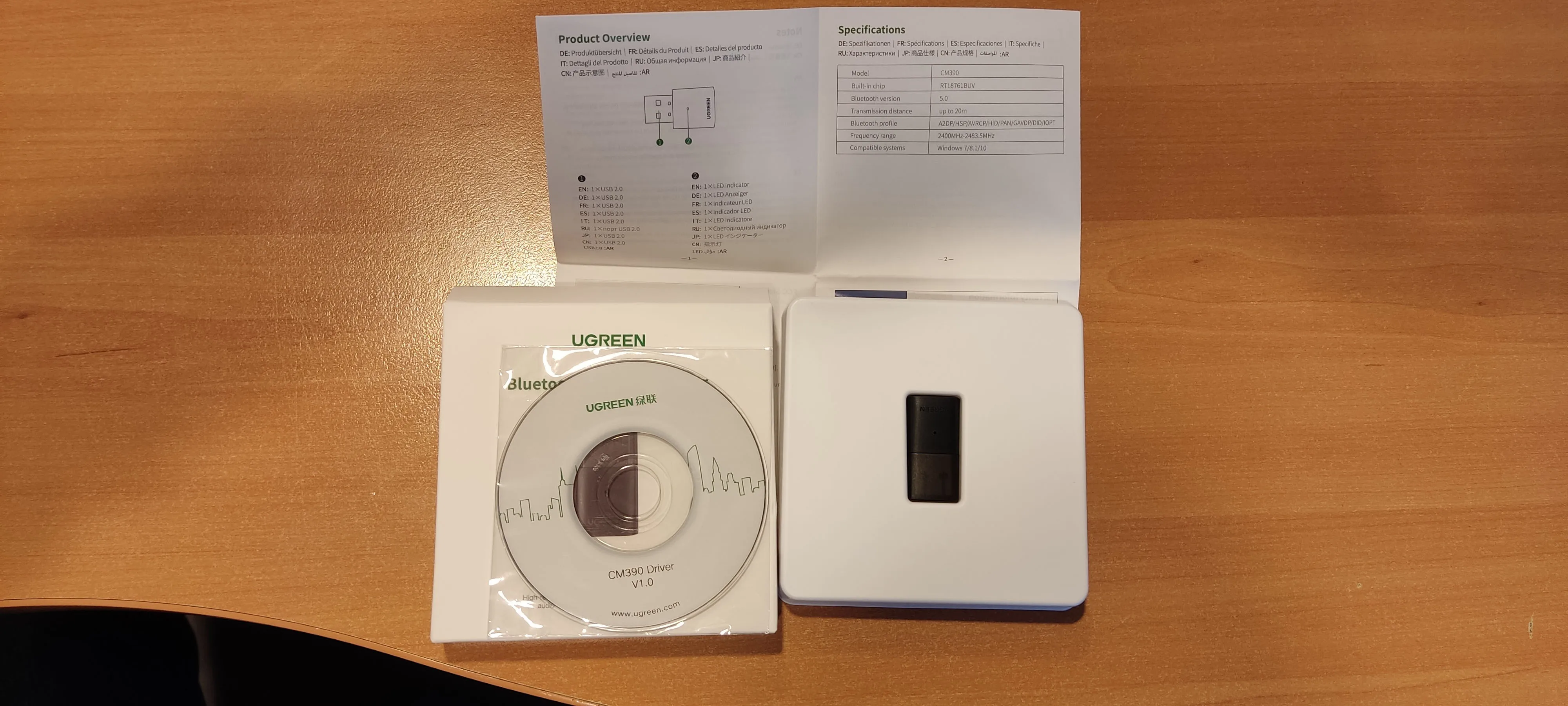 Заказал 13.11.2021 забрал на Укрпочте 04.12.2021. Проверил Bluetooth на Ubuntu, инструкция из интернета, диск не использовал - нет CD/DVD привода ;-)