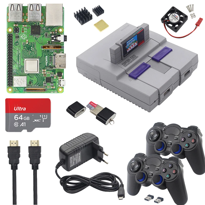 Игровой Комплект Raspberry Pi 3 Model B Plus, источник питания, sd-карта, HD кабель, теплоотвод, Retroflag Superpi чехол для Retropie 3B Plus Pi 3B +