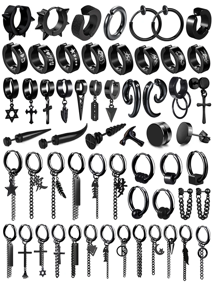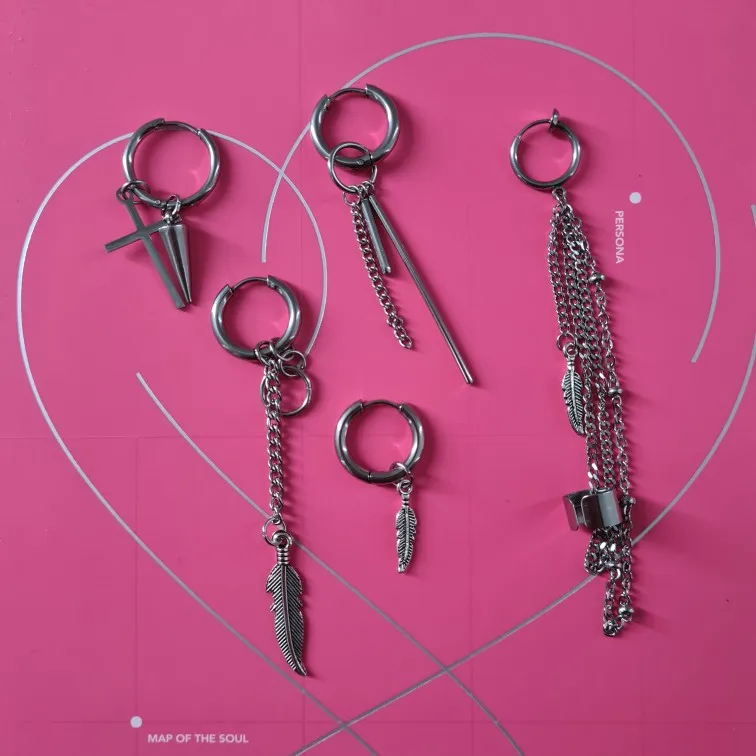 SOHOT New Men Punk Tassel Multi-layer Chain Drop Earrings Vintage Rock Leaf Cross Geometric Chic Metal Bar Pendant Party Bijoux