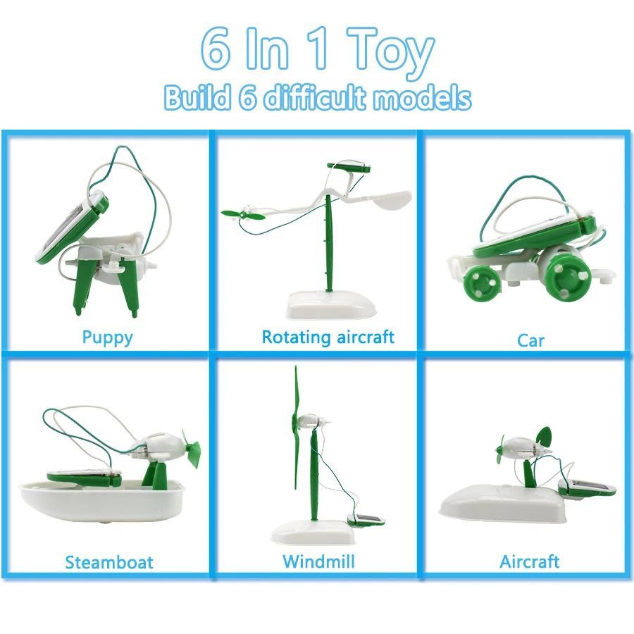 6 IN 1 Solar Robot Model Kit Science Toys for Children DIY Assemble Airplane Boat Car Train Model Educational Gifts Toys for Boy