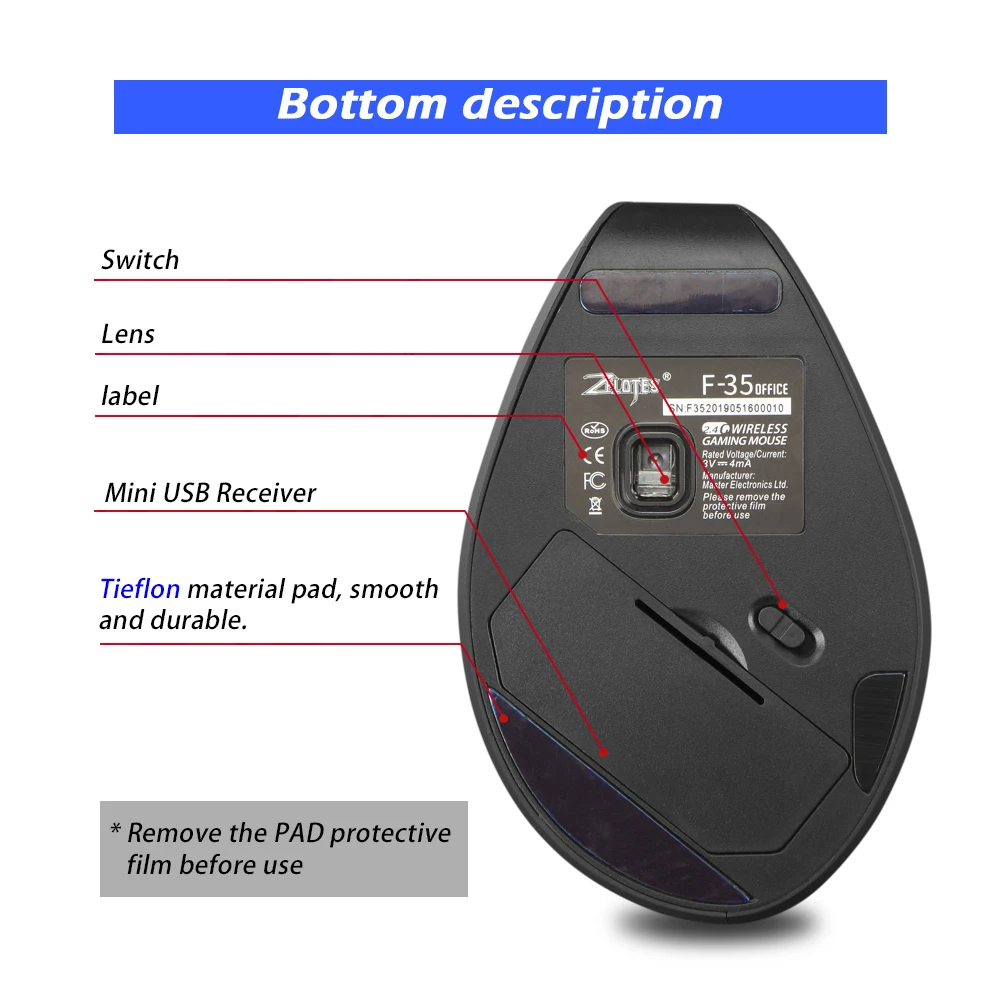 В F-35A Вертикальная Беспроводная игровая мышь специально разработан для заядлых геймеров и имеет уникальную структуру и палец ПАЗ для того, чтобы разрешить ваши пальцы и растянутом положении и более равномерно, для точного позиционирования, удобное управление, высокая надежность и удовольствие от работы.